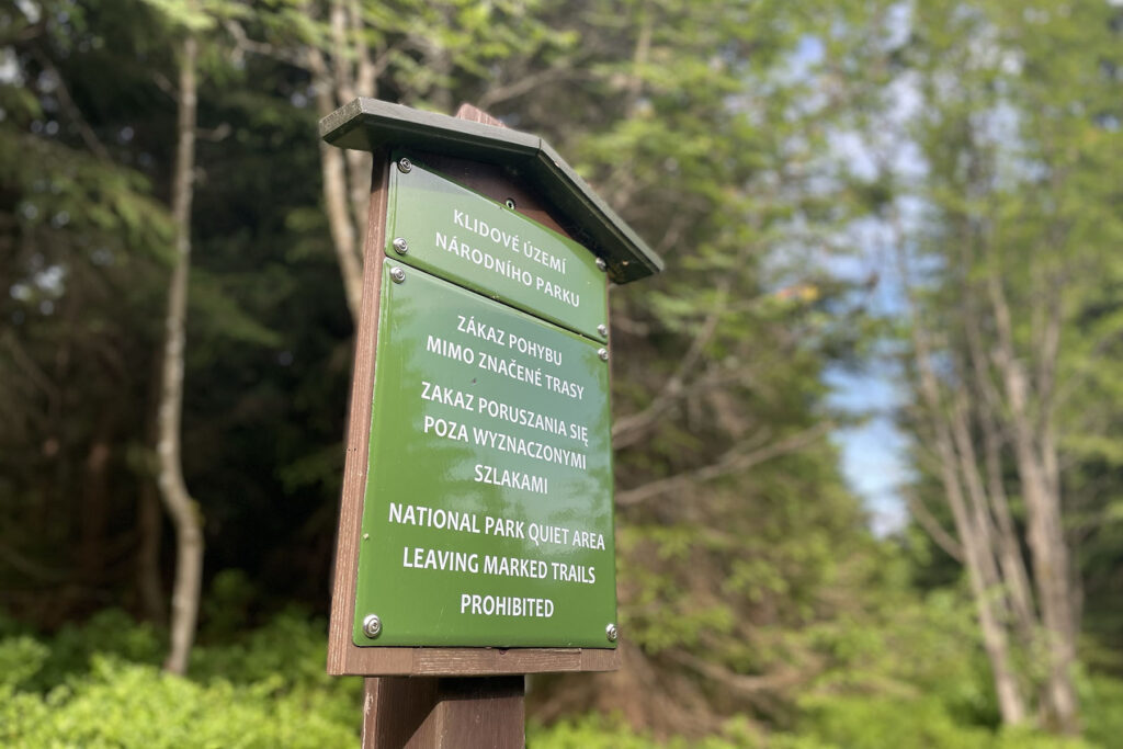 - V klidových zónách se pohybujte se pouze po vyznačených stezkách, abyste chránili vzácné rostliny a živočichy.