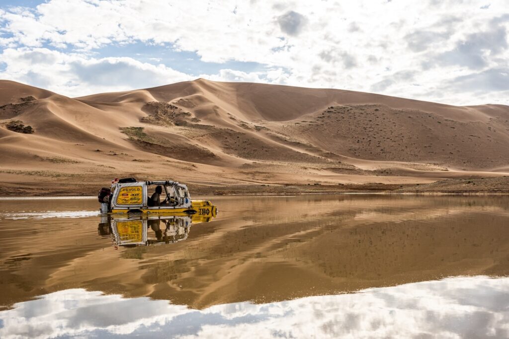 Dan Přibáň se vrací v obojživelném autě, výprava k dunám Gobi