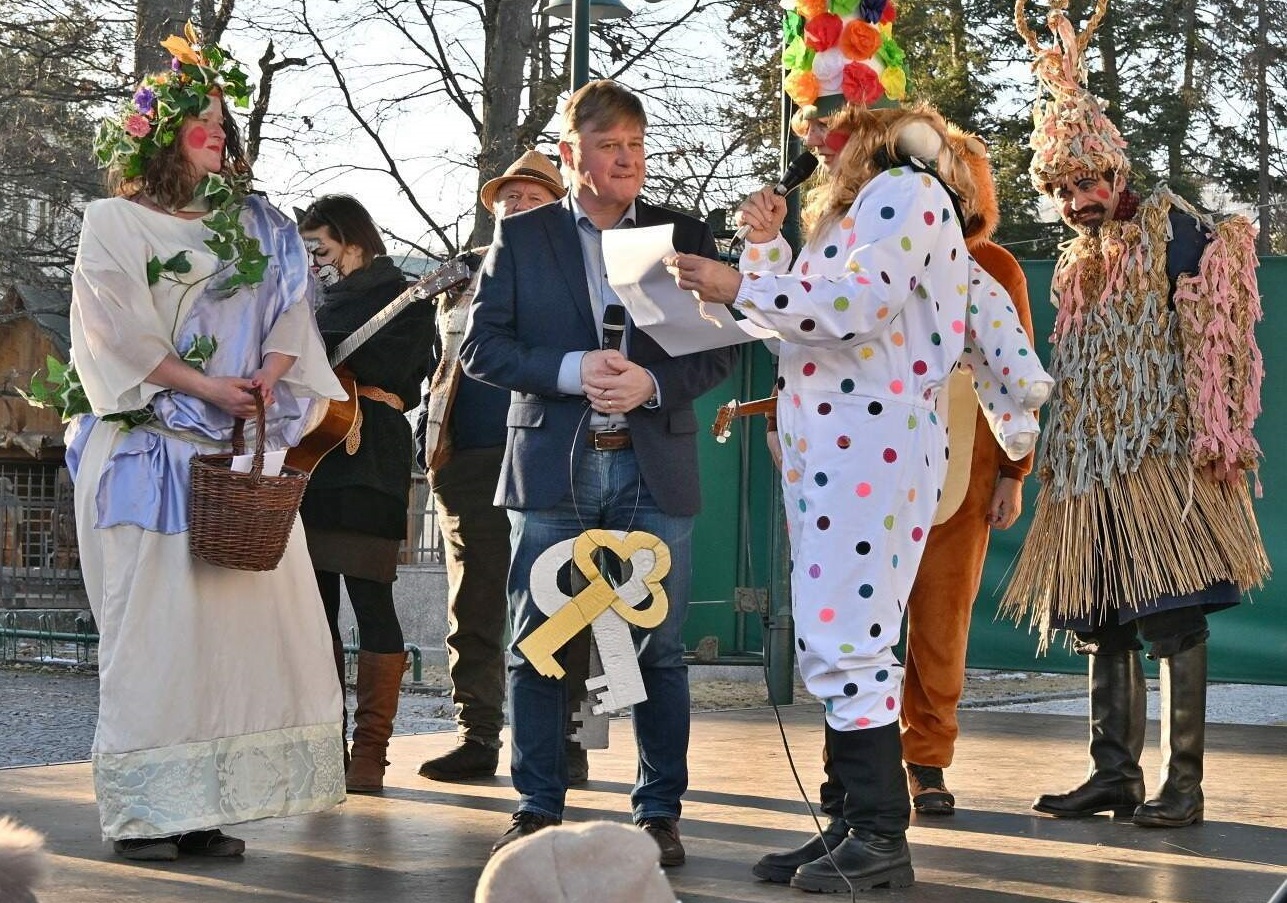 Hudba, zpěv, zábava a rozličné masky. To jsou tradiční atributy každého masopustu. Nejinak tomu bylo i v úterý odpoledne v centru Vrchlabí, kde se uskutečnil populární Masopustní outerek. Rozverný průvod dorazil i na zámek a přizval do svých řad starostu města Jana Sobotku, který pak po dobu konání akce předal maskám symbolický klíč a vládu na městem.