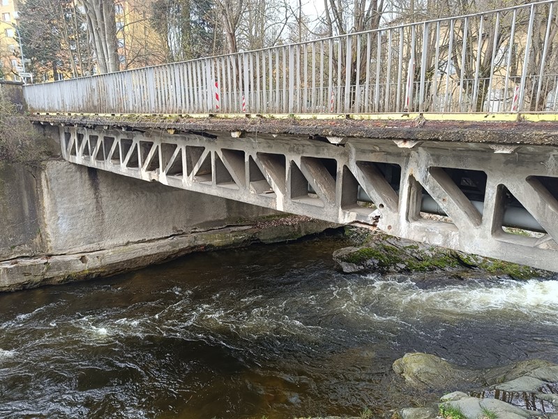 O tom, že tento most, který je ve vlastnictví města a to je tedy odpovědné za jeho stav, dostává zabrat a odráží se to i na jeho kondici, je nyní patrné již na pouhý pohled. Nosník se začíná v exponovaných místech, tedy ve styčnících, sypat a odpadává z něj beton.
