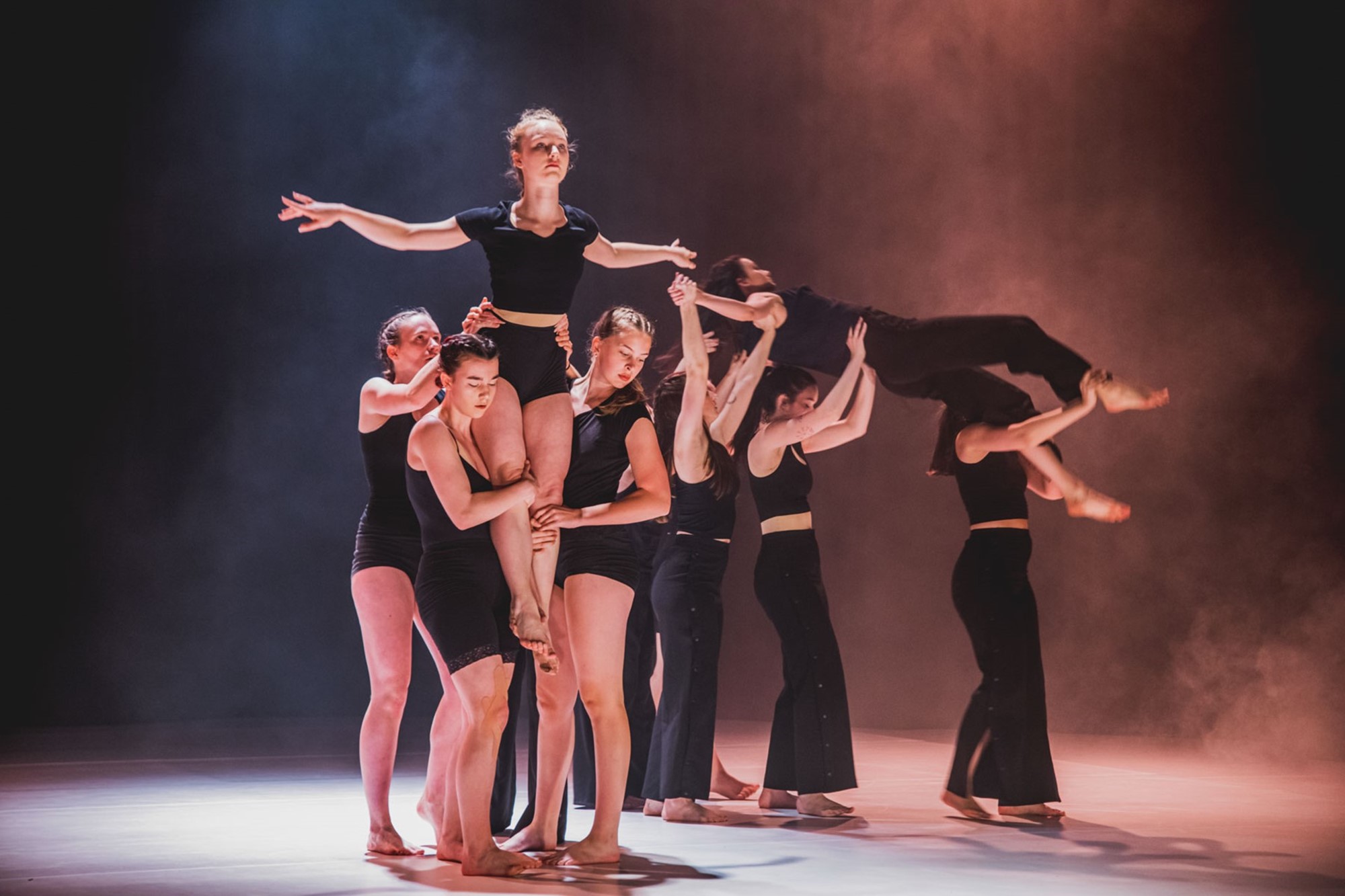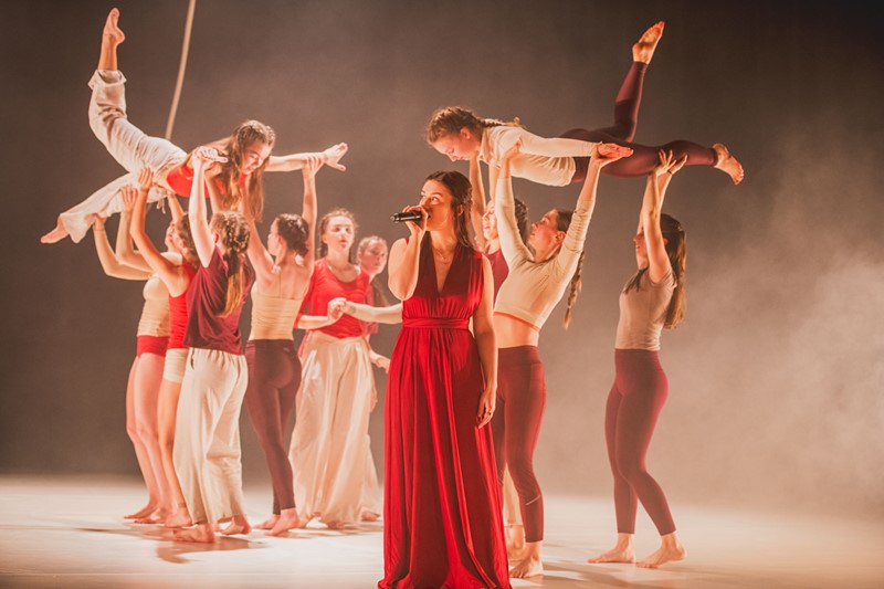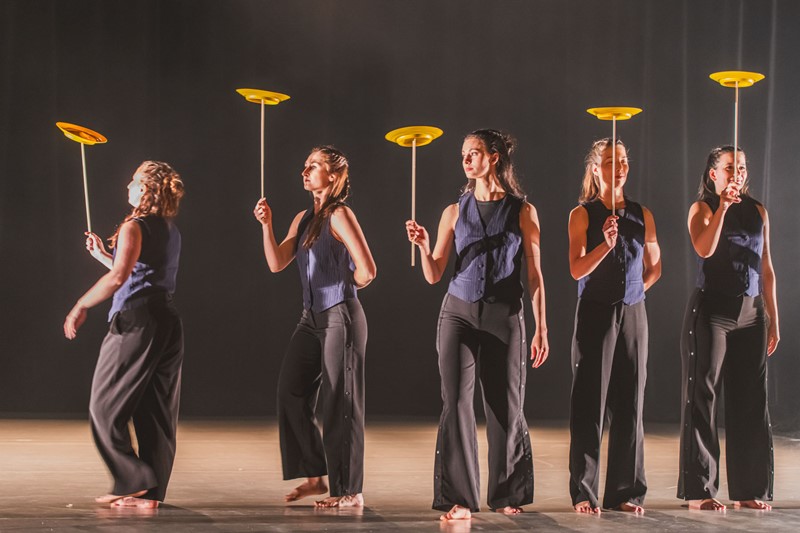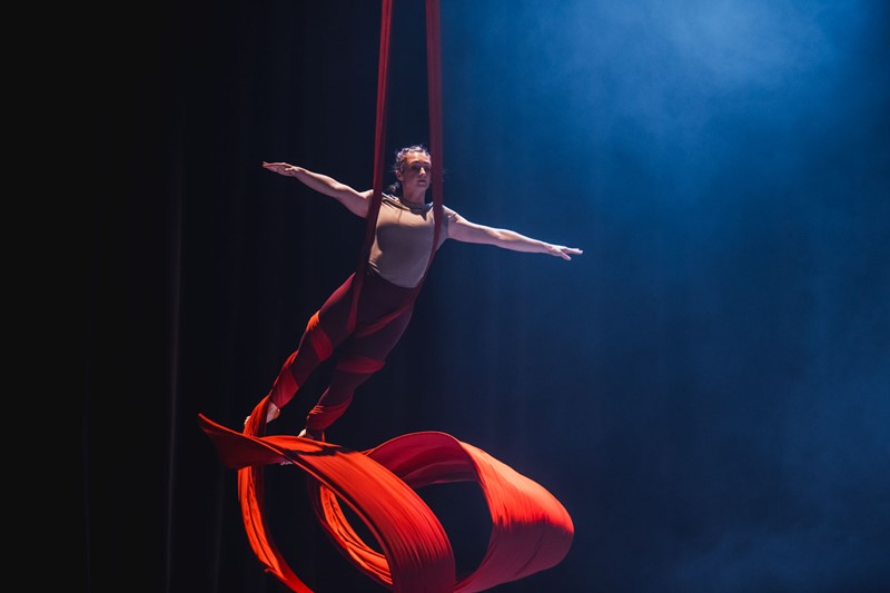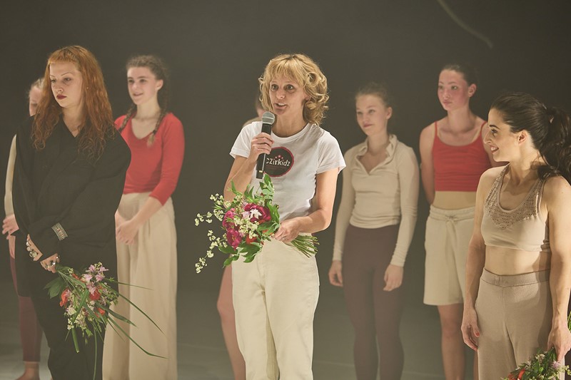 První část přípravy představení jsme hodně věnovaly novým cirkusovým dovednostem – točení s talíři, hula hoops, flower sticks…, to pro tanečnice bylo úplně nové. Postupně ale přibývalo pohybového materiálu, ve kterém mají největší kredit, a to je contemporary dance spojený s akrobacií. Hodně z nich má i mírně pokročilé dovednosti se závěsnou akrobacií, takže jsem tréninky stavěla tak, aby i v tom krátkém čase využily nové dovednosti a zároveň se mohly s jistotou opřít o to, v čem jsou dobré.