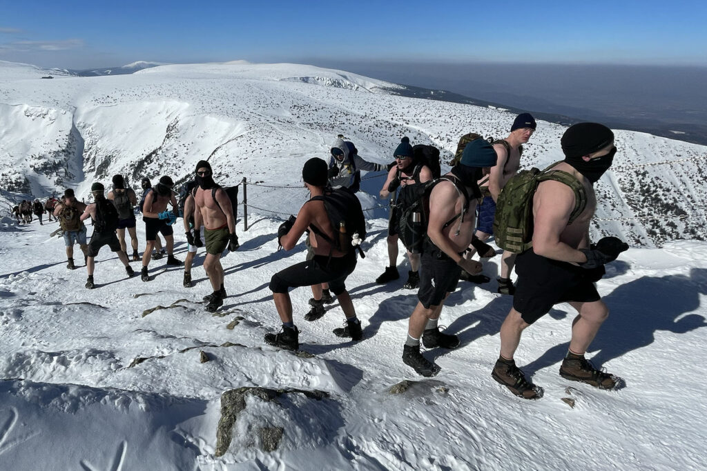 Trasa otužileckého výstupu z Pece pod Sněžkou na vrchol nejvyšší české hory Sněžky měla měřit devět kilometrů s převýšením zhruba 800 metrů. Také krkonošská akce měla být organizovaná za účasti zkušených průvodců.