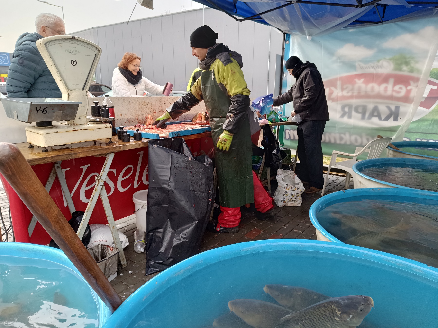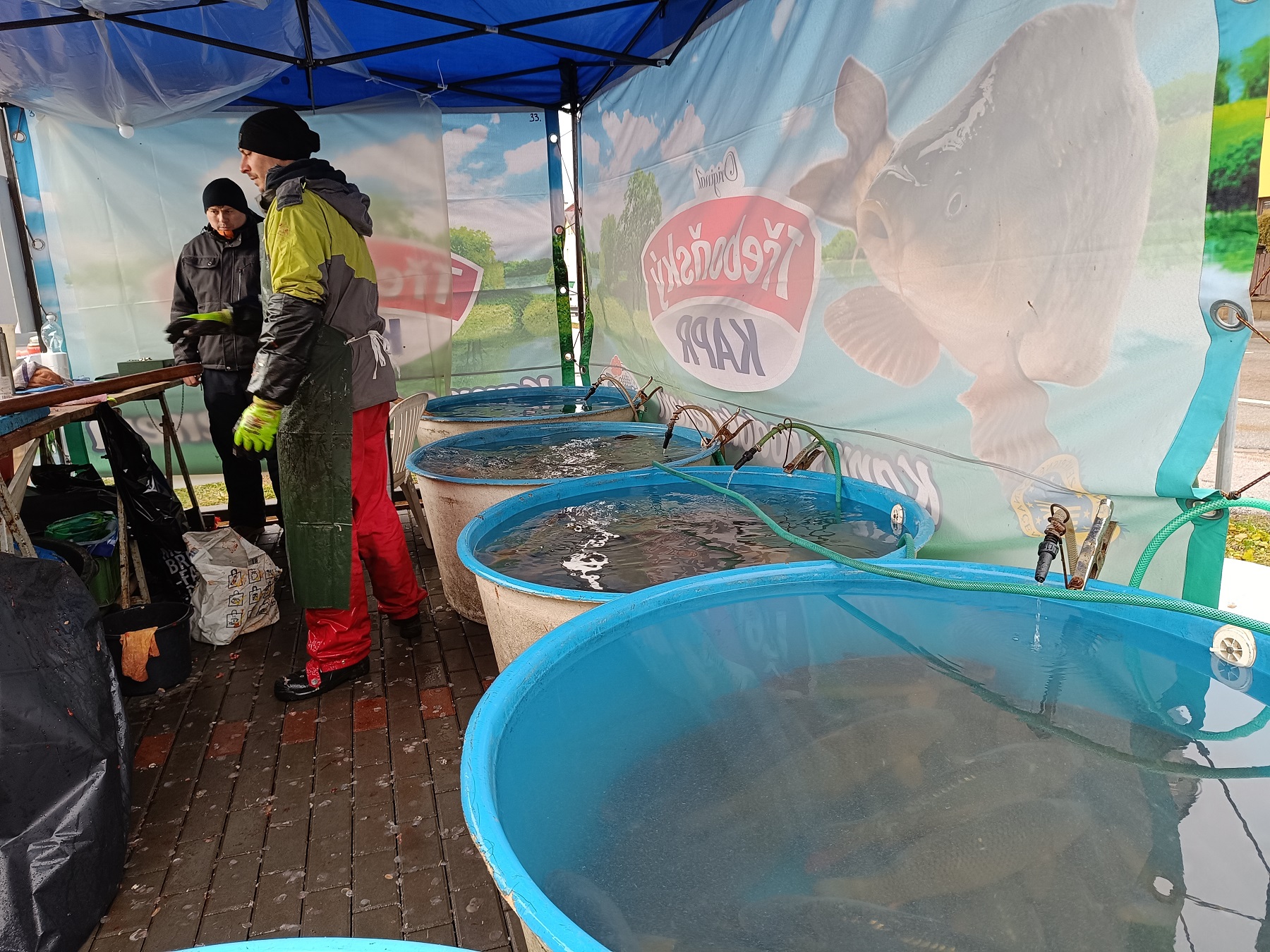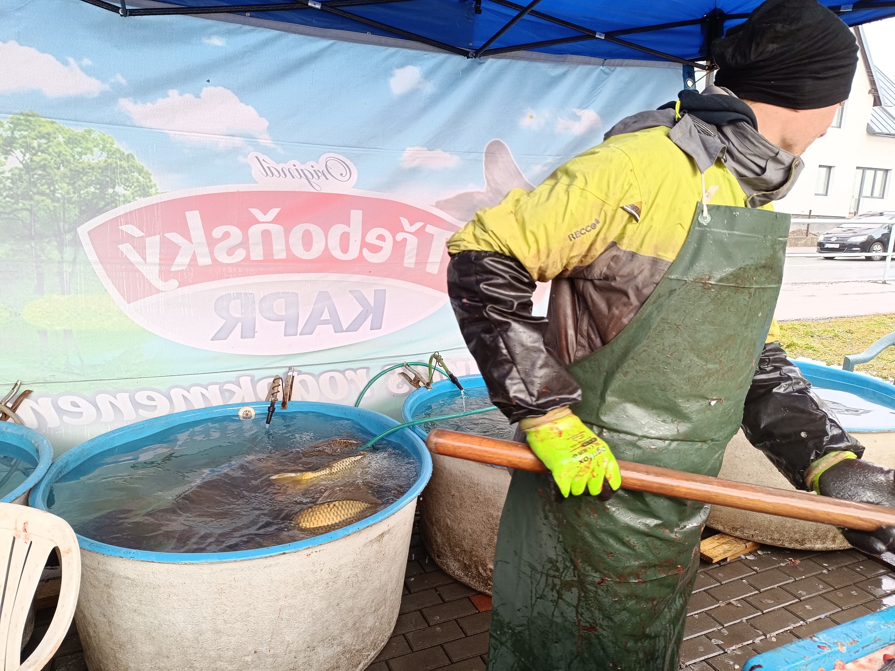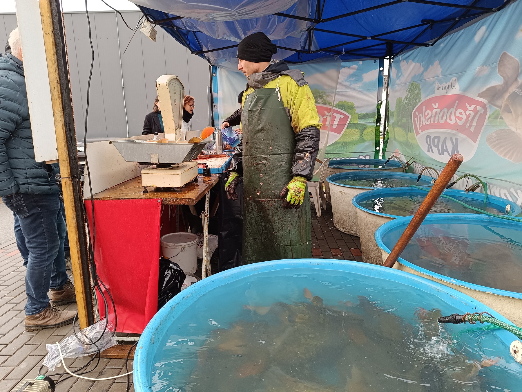 Prodej vánočních kaprů ve Vrchlabí