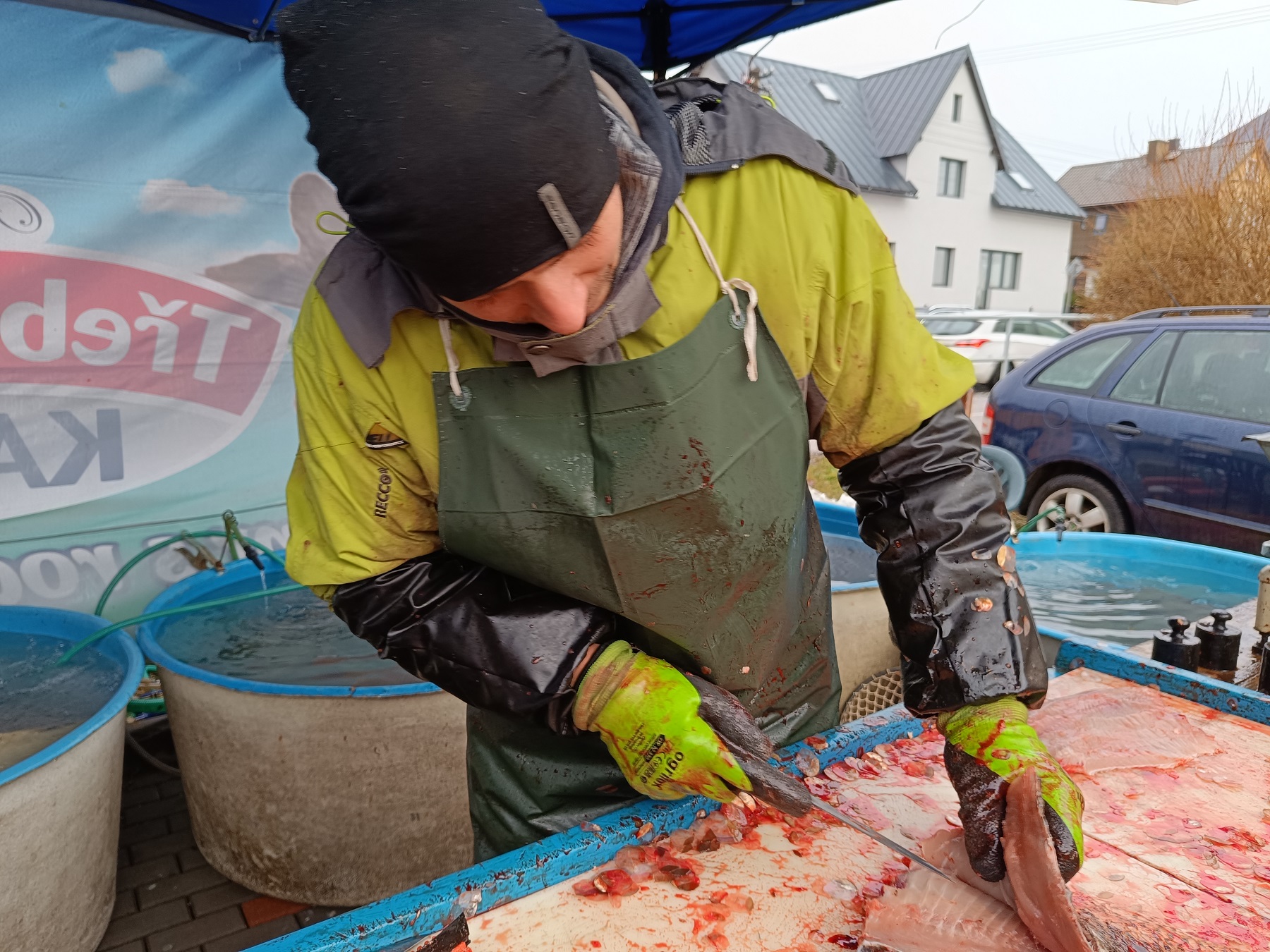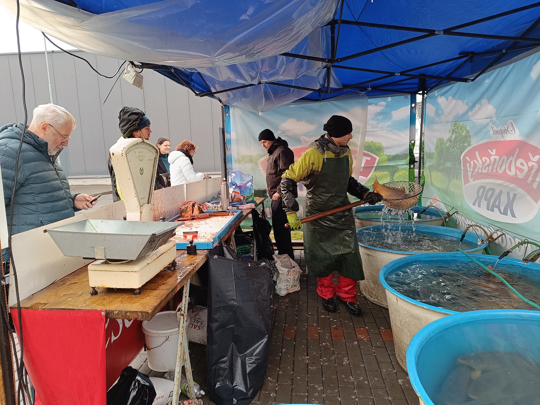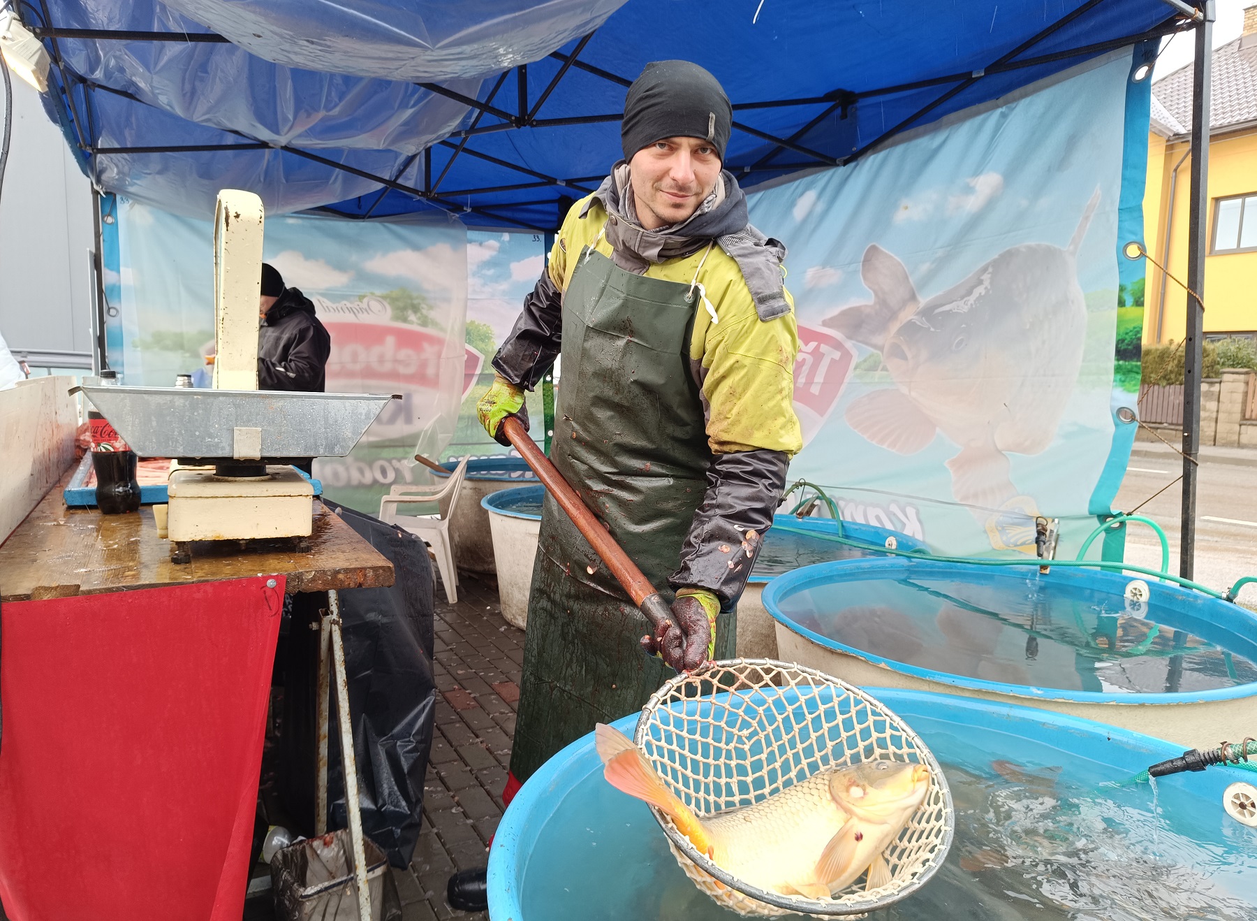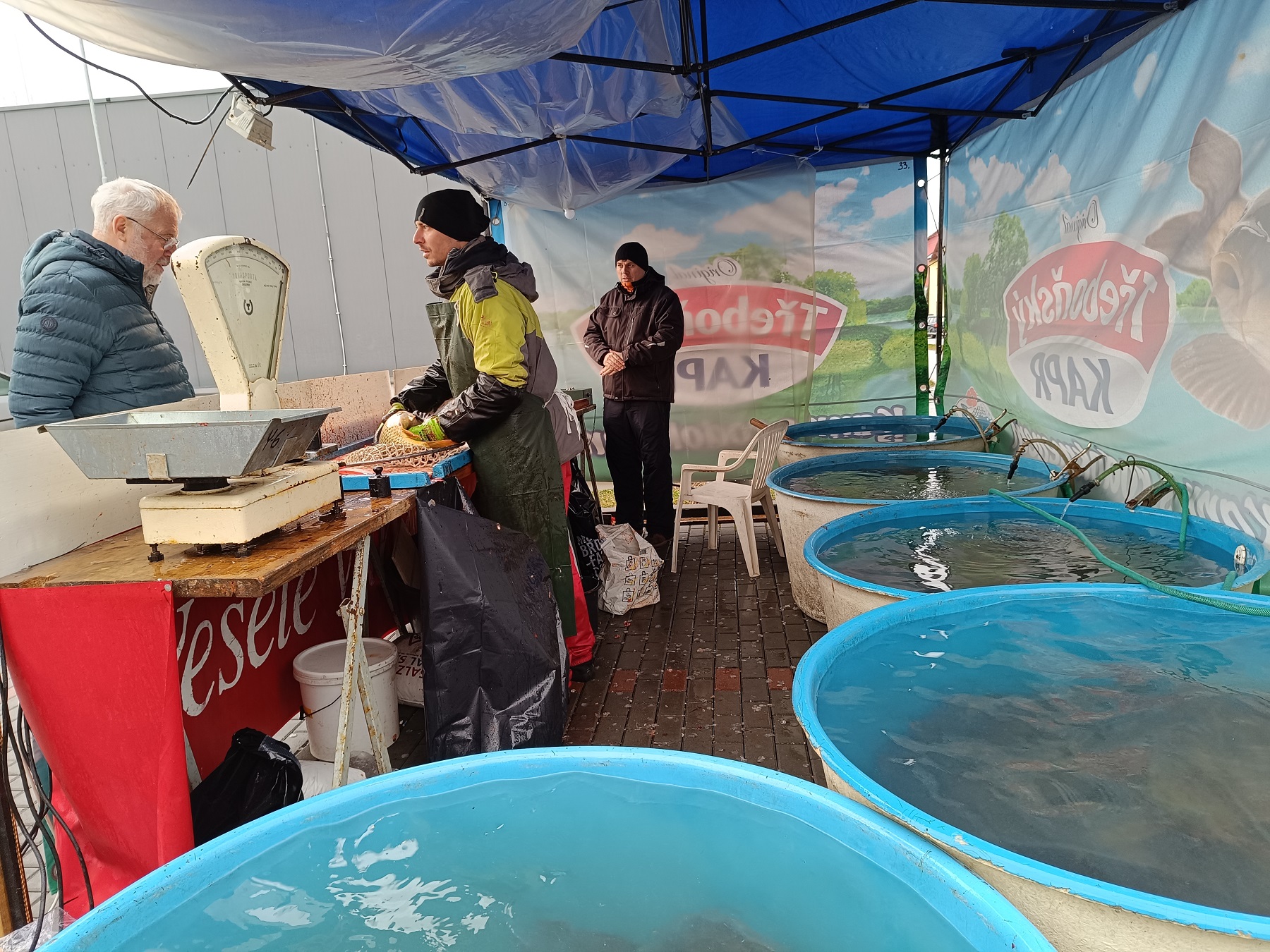 Prodej vánočních kaprů ve Vrchlabí