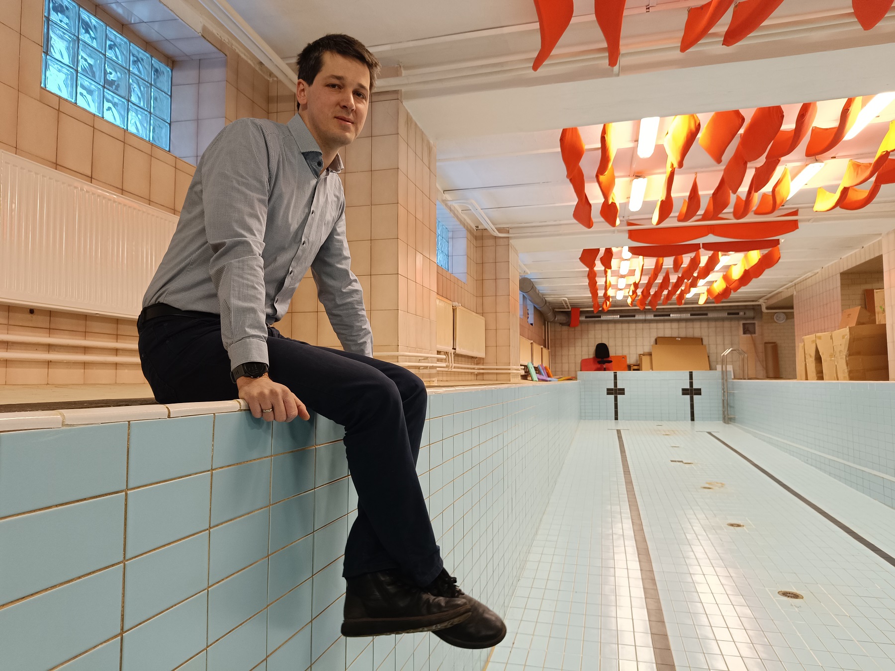 Budova gymnázia patří městu. Dále je potřeba si říci, že město Vrchlabí postavilo bazén někde jinde, takže v tuto chvíli nemá nějaký velký zájem investovat nemalé finanční prostředky do bazénu ve škole. Druhá rovina je taková, že budova gymnázia si žádá velký zásah komplexně. A já se k tomu stavím tak, jako když dostanu dům po babičce. Nejdříve opravím střechu a interiér a zajistím, aby fungovaly veškeré rozvody. A teprve když se dobře zabydlíme, můžeme mluvit o ostatních věcech. Nicméně byl bych rád, aby v projektu, který nyní vzniká, bazén zůstal a počítalo se s ním i nadále. Domnívám se, že to bude finančně asi to nejméně nákladné, co se dá udělat. Kdybychom to přetvářeli na jiný prostor jako například učebnu či výdejnu obědů, bylo by to za mnohem vyšší prostředky než uchovat stávající bazén. Zároveň si nedovedu představit, že bychom neudělali nic a že by tu dalších šedesát let zůstala jen díra v zemi, která bude plesnivět. Něco se s tím dělat musí, ale nebude to první krok.